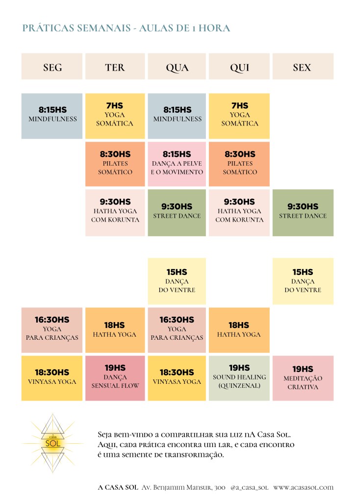 A Casa Sol nasce desse percurso vivo, como um desejo amadurecido de criar um lugar solar e acolhedor, onde corpo, mente e sensibilidade possam ser nutridos. Um espaço para pausar, sentir e ampliar a consciência, sustentando escolhas mais alinhadas com a própria essência.